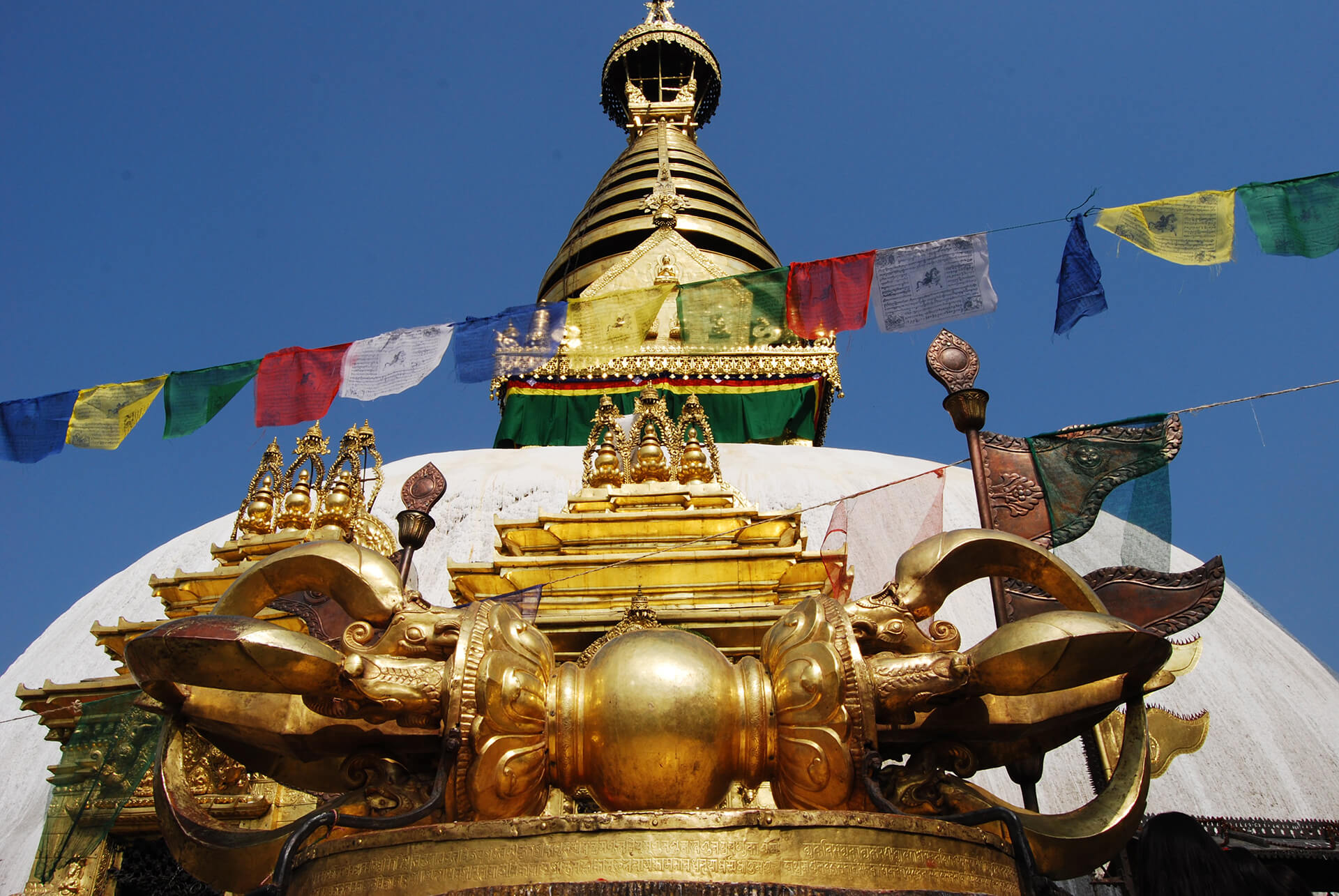 This ancient stupa is the most sacred Buddhist shrines of Nepal. The area surrounding the stupa is filled with smaller chaityas, temples, painted images of deities and numerous other religious objects. There are many small shrines with statues of Tantric and shamanistic deities, prayer wheels for the Tibetan Buddhists, Shiva lingams and a popular Hindu temple dedicated to Harati, the Goddess of smallpox and other epidemics.